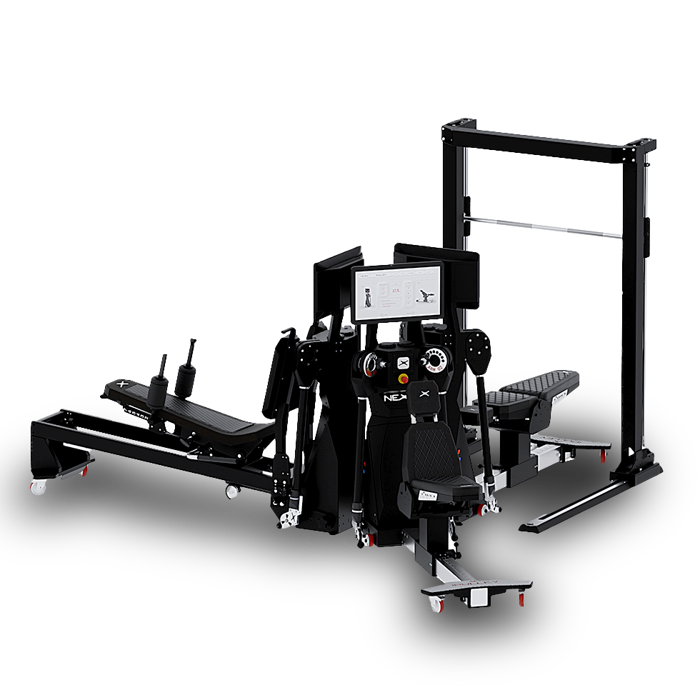 Nexa utiliza software inteligente para adaptar automáticamente los entrenamientos a las necesidades específicas de cada usuario: ajusta dinámicamente la resistencia a tiempo real, copia el rango articular y ahorra tiempo de ajuste en cada sesión gracias a sus registros.